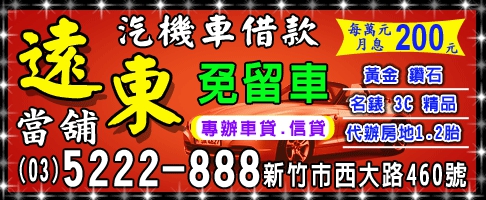 新竹市遠東當舖專營新竹市縣汽機車借款(新竹汽車借款,新竹機車借款)、免留車借錢